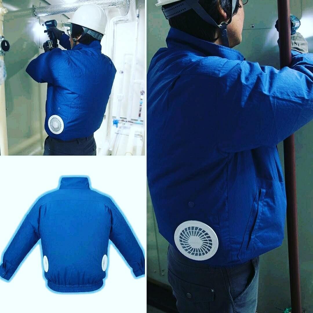 Casaco de Trabalho Anti Faísca com ventiladores a baterias de 10,8 – 18V da marca Makita.