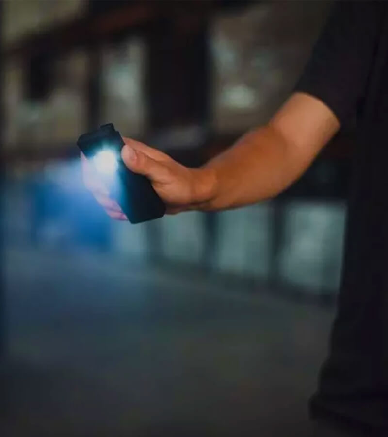 A SLIM + é uma lanterna de bolso fina e ergonómica, recarregável, de 700 lúmenes com um ponteiro de laser vermelho, de classe 2 certificado pela UE, e funciona como um banco de energia de emergência para seus dispositivos alimentados por USB (POWER BANK).