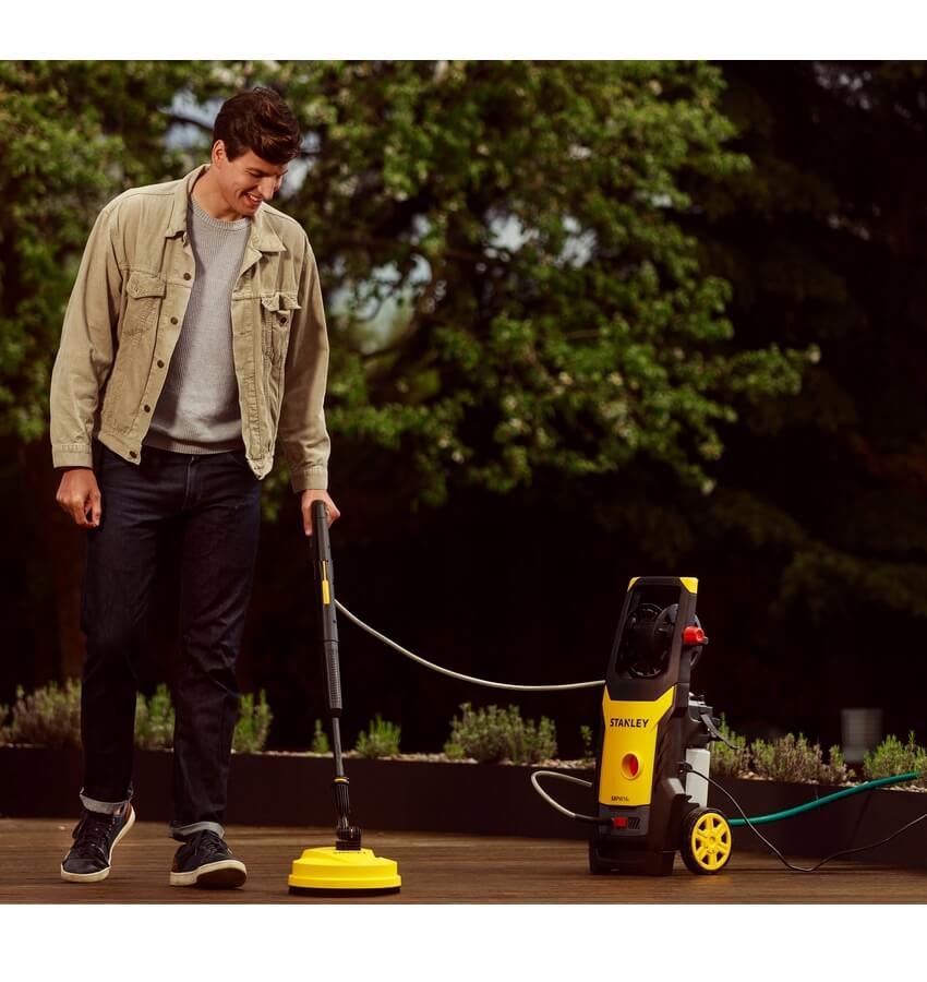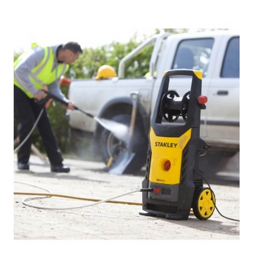 Lavadora de alta pressão profissional da Stanley, equipada com um potente motor de 1600 W.